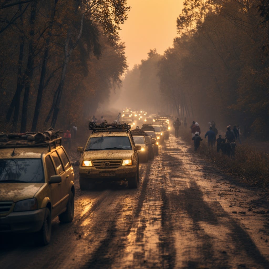 Родной дом остался за кадром, концентрируя в себе тот ужас, о котором взрослые запрещают друг другу говорить, в машине же дети. Что там сейчас позади, фундаменты разрушенных домов, или все уже снесли бульдозерами вместе с трупами и радостно строят новый город для новых жителей? Призрак Хатыни пахнет гарью.
